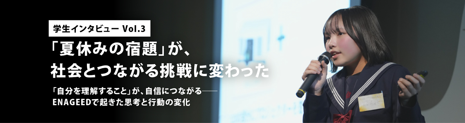 ENAGEED COREを3年間受講した、(熊本県)玉名高校附属中学校3年生の斎田悠理菜さんのインタビュー記事を公開しました。